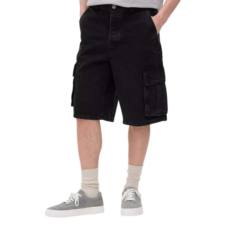 กางเกงยีนส์ขาสั้นผ้าฝ้ายทรงหลวมกระเป๋าทรงหลวมระบายอากาศทนทานมีกระเป๋าสีดำสำหรับฤดูร้อน