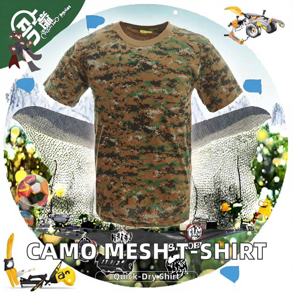 เสื้อยืดแขนสั้นผู้ชายแห้งเร็วระบายอากาศ180g ตาข่ายยุทธวิธีลายพรางสำหรับฤดูร้อน