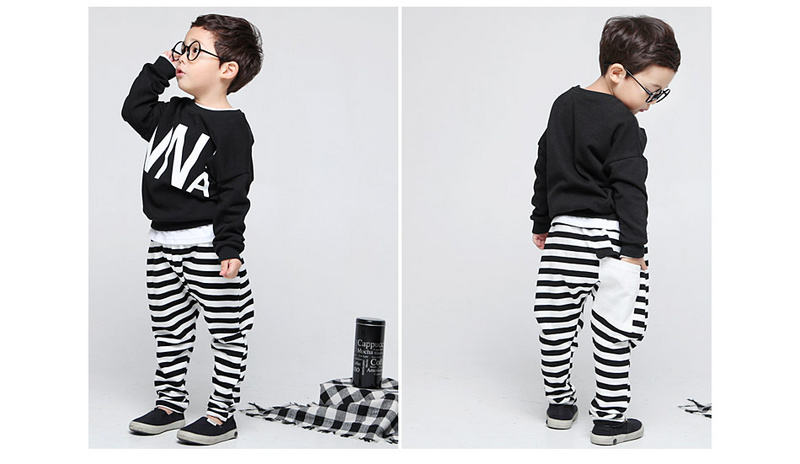 ชื่อสินค้า:เสื้อยืดและกางเกงผ้าฝ้ายลายทางลำลองสำหรับเด็ก