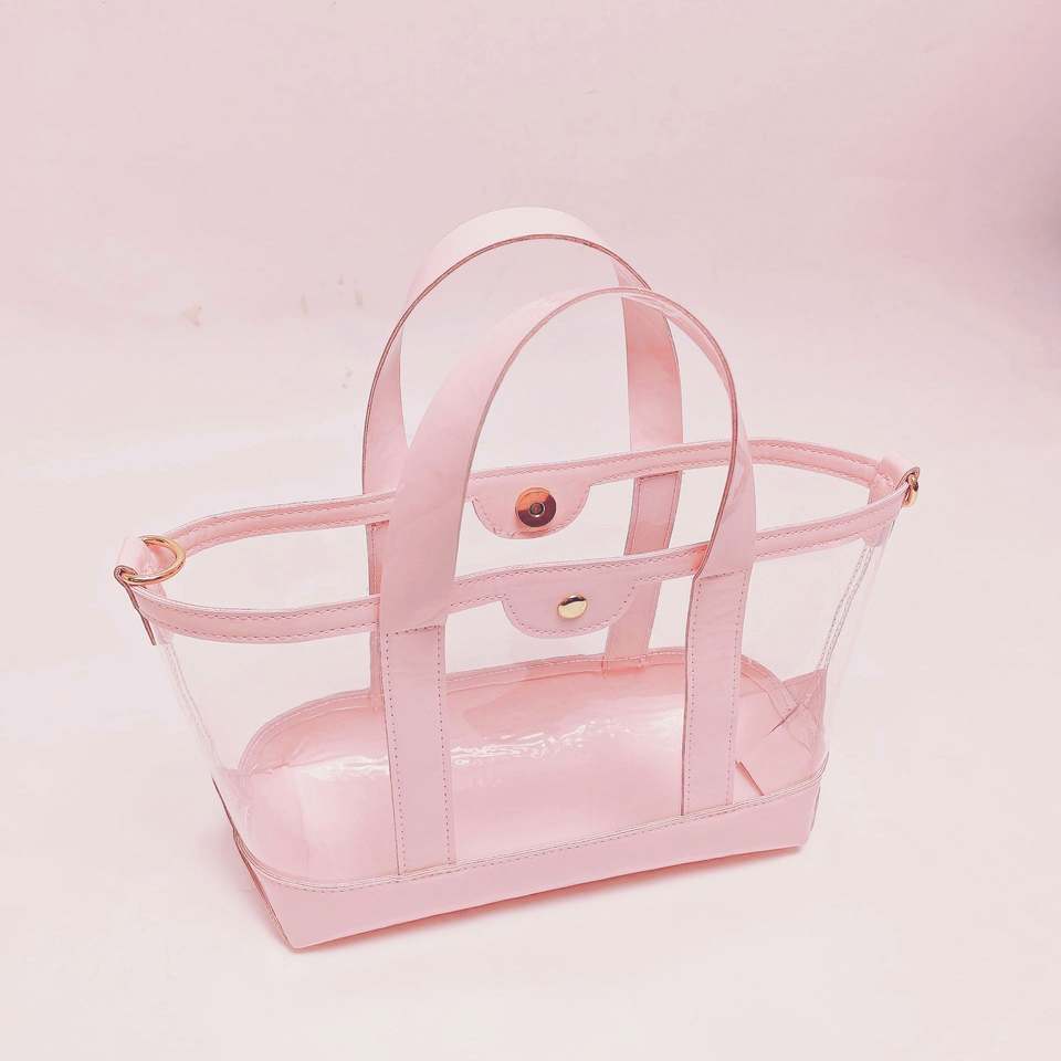 กระเป๋าโท้ทใสสำหรับฤดูร้อน แบบกำหนดเองได้ แฟชั่นสำหรับผู้หญิง กระเป๋าถือ PVC สำหรับเดินทางไปเที่ยวชายหาด กันน้ำ ปิดด้วยแม่เหล็ก