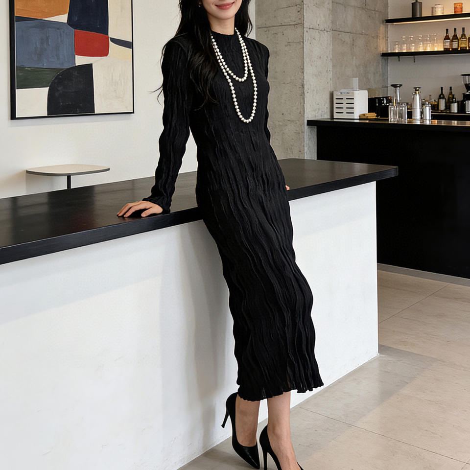 ชุดฤดูร้อนสำหรับผู้หญิง ดีไซน์หรูหรา ผ้ามีเท็กซ์เจอร์ จับจีบเข้ารูปทรงสวย ชุดเดรสยาวทรงเข้ารูป ป้องกันรอยยับ เป็นมิตรกับสิ่งแวดล้อม ร้านขายส่งออนไลน์