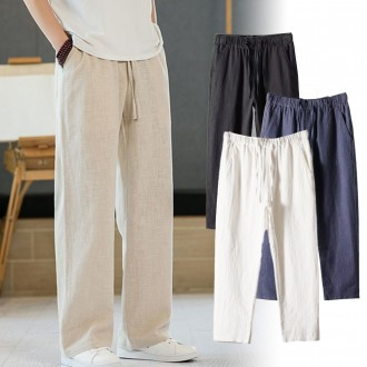 กางเกงลำลองผ้าลินินแบบเท่ๆสำหรับผู้ชายกางเกงมีสายคาดกางเกงน้ำแข็งฤดูร้อน