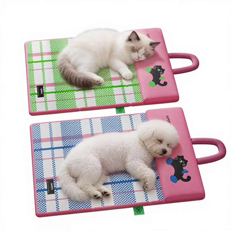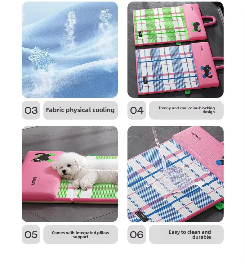 แผ่นรองนอนสำหรับสัตว์เลี้ยงแบบกันน้ำสำหรับฤดูร้อน สำหรับสุนัขและแมว แบบสองด้าน ระบายอากาศได้ดี พับเก็บได้ ลายสก็อต บรรจุใยฝ้าย PP