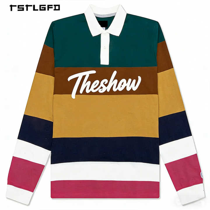 เสื้อยืดแขนยาวผ้าฝ้ายถักสำหรับฤดูร้อน ระบายอากาศได้ดี สไตล์รักบี้ พร้อมโลโก้ตัวอักษรที่อกเสื้อ แบบสั่งทำได้ สตรีทแวร์
