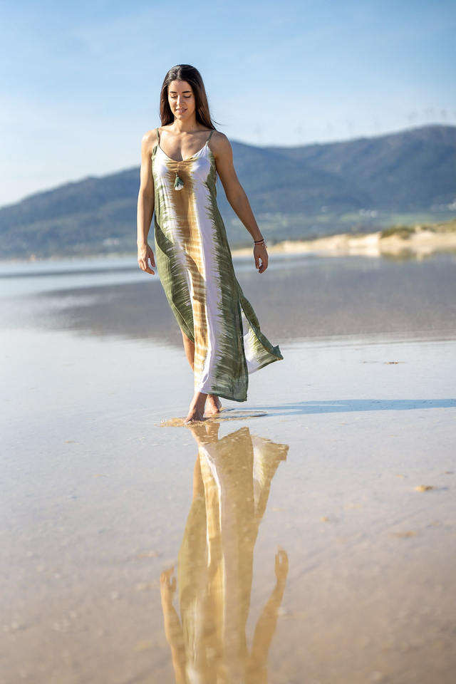 ชุดเดรสยาวผ้าฝ้ายย้อมสีมือสไตล์ฤดูร้อนสำหรับผู้หญิง แขนกุด แฟชั่นเสื้อผ้าสตรี