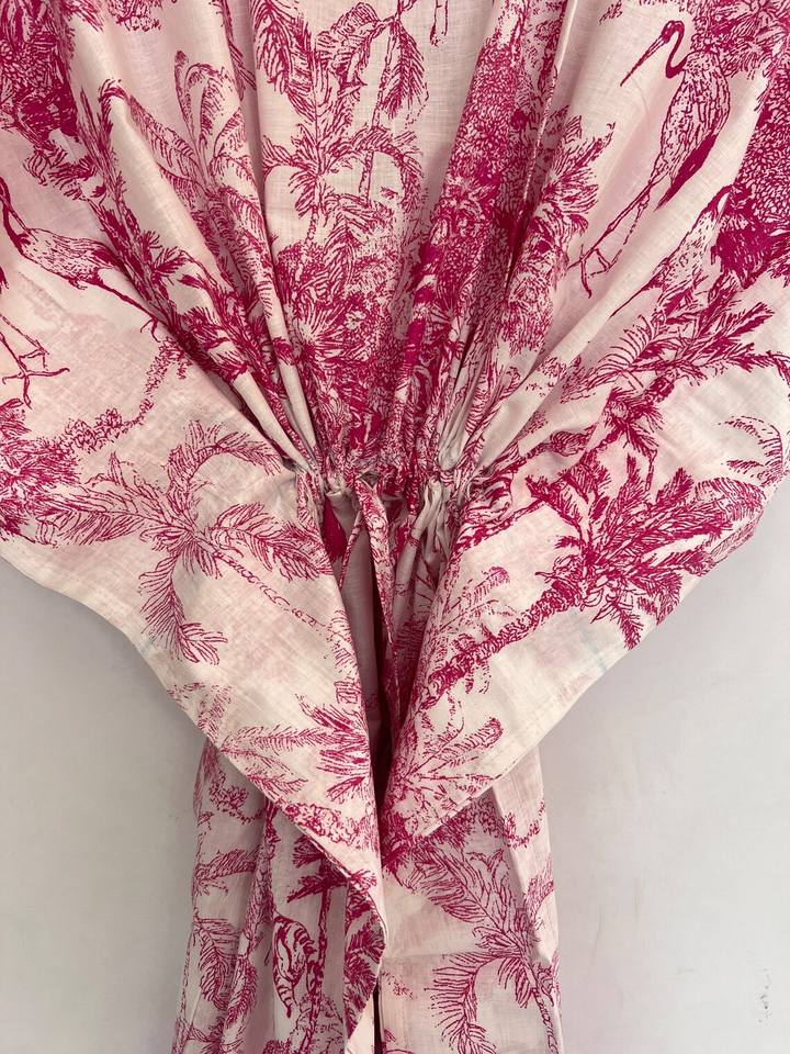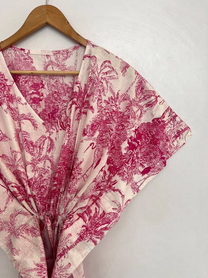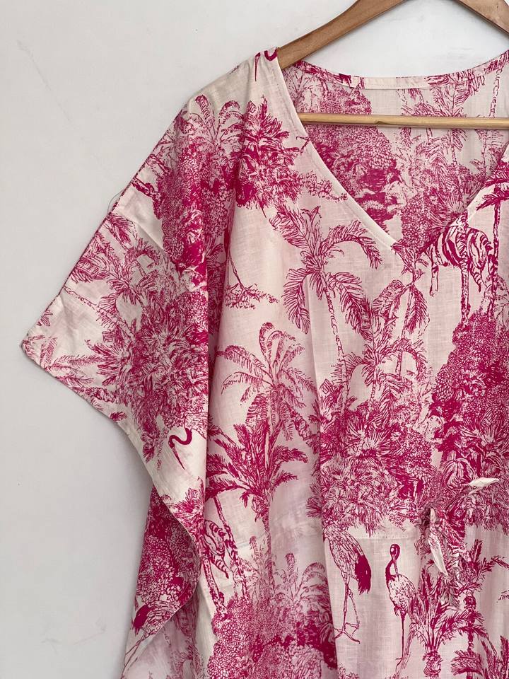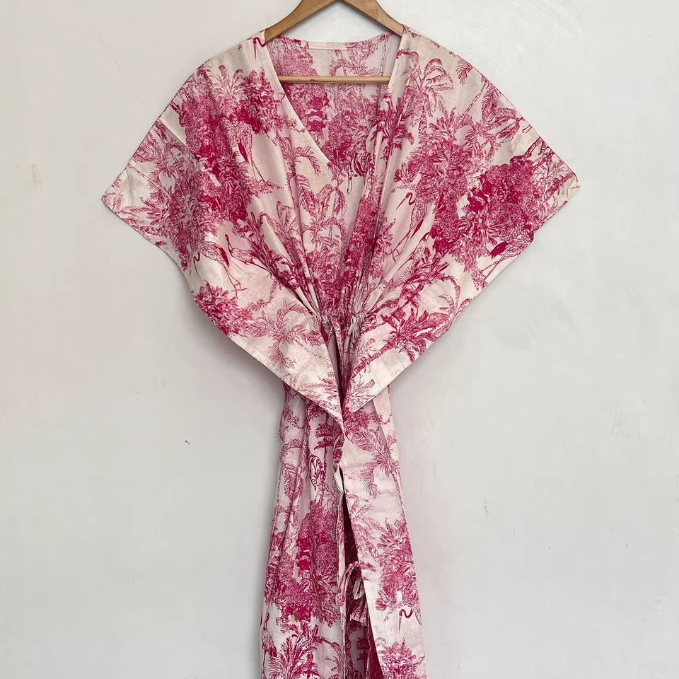ชุดคลุมชายหาดสีขาวผ้าคอตตอนสำหรับฤดูร้อนชุดใส่อยู่บ้านพิมพ์ลายคราม