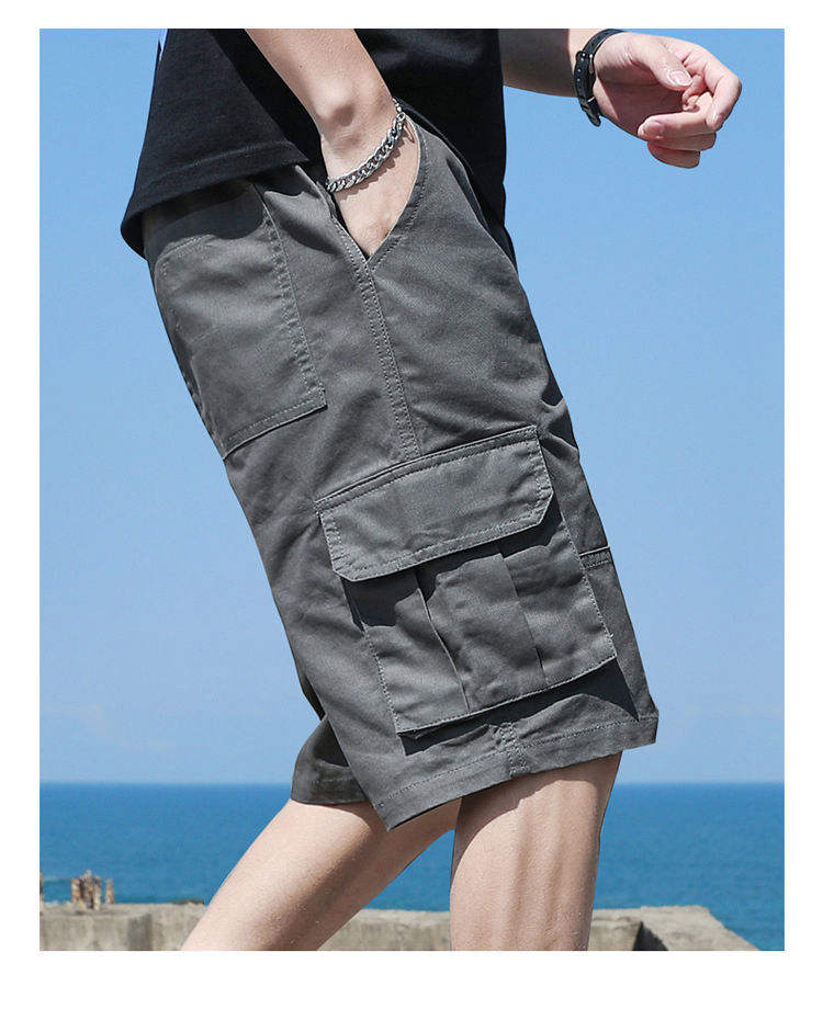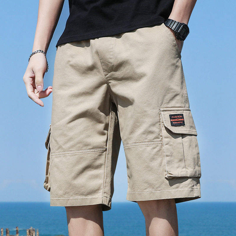 กางเกงคาร์โก้สำหรับผู้ชายกางเกงขาสั้นคาร์โก้เข้ารูปแบบสั้นผ้าแคนวาสสำหรับใส่ในฤดูร้อน