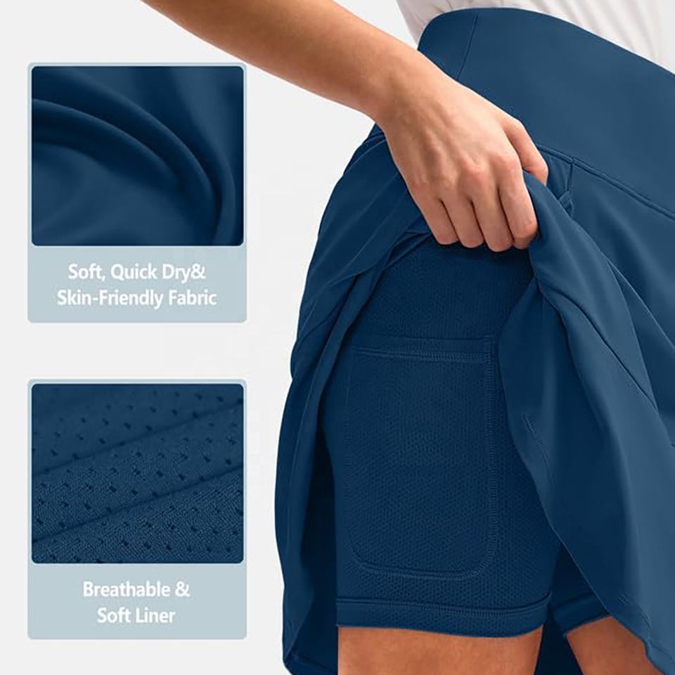 กระโปรงสั้นระบายอากาศได้ดีสำหรับผู้หญิงชุดเล่นเทนนิสเสื้อผ้ากีฬาพิมพ์โลโก้สำหรับฤดูร้อน