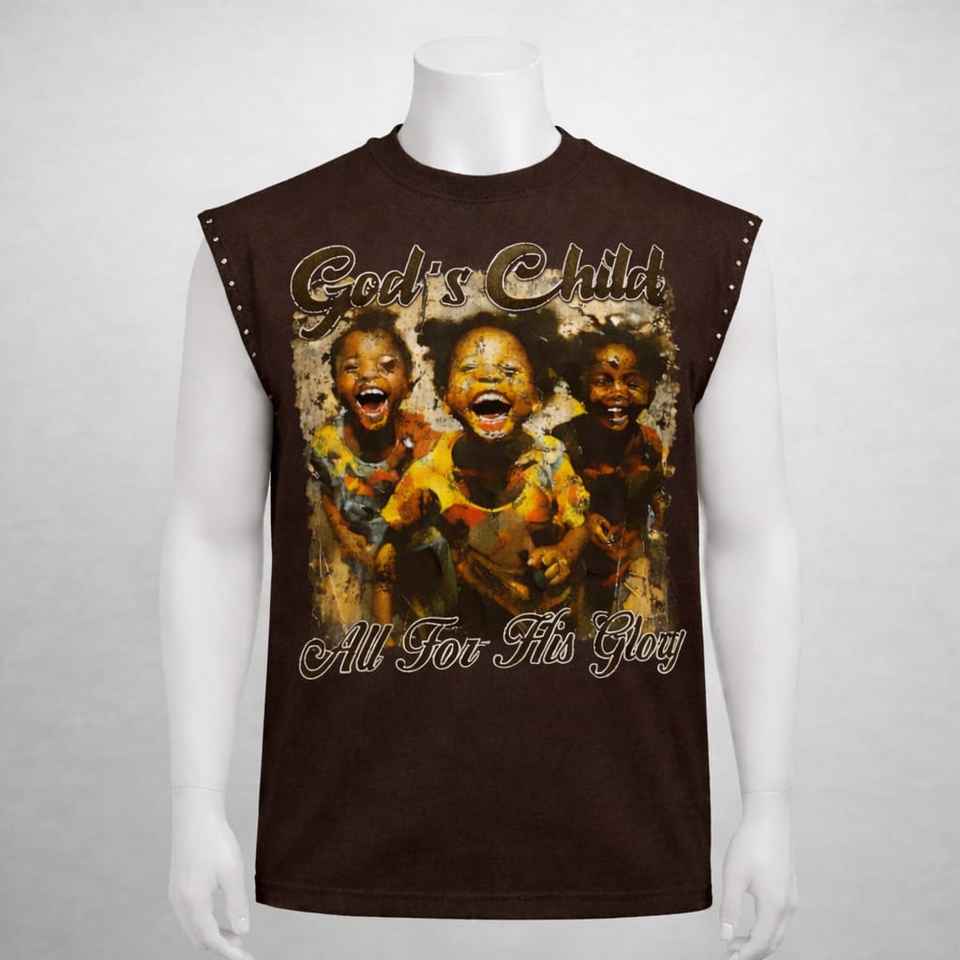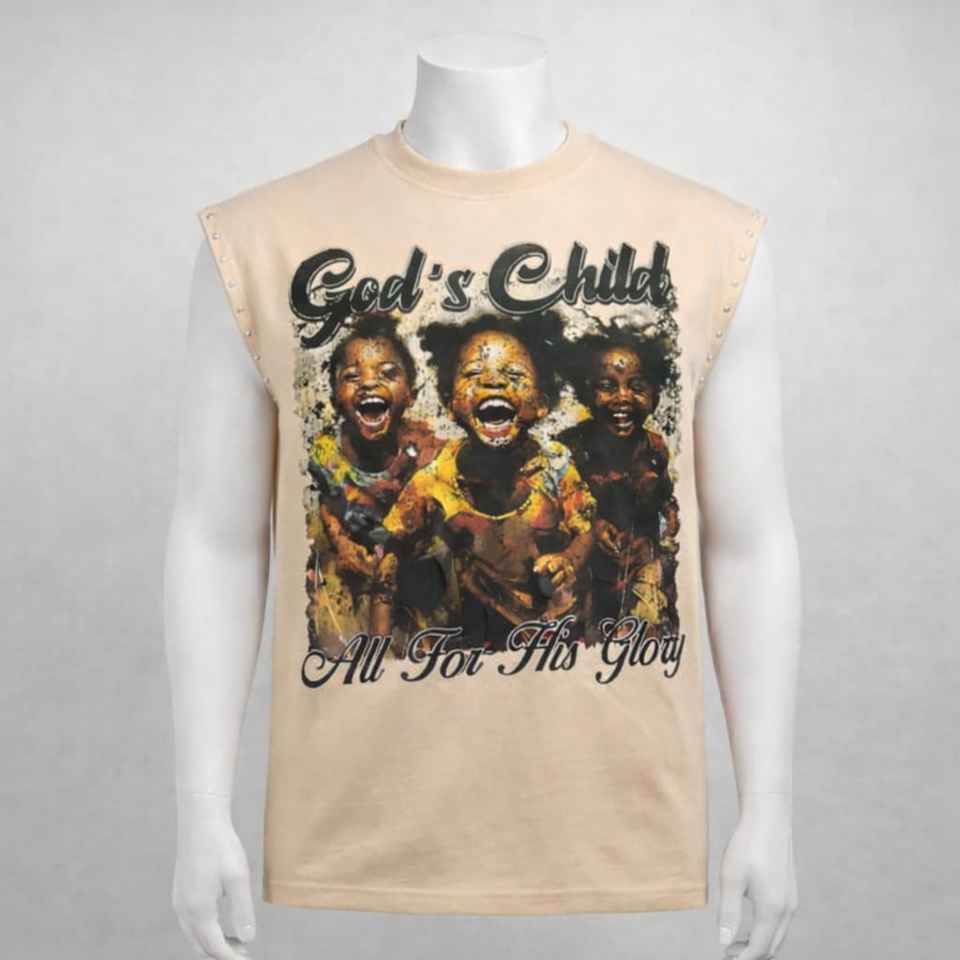 เสื้อยืด/เสื้อกั๊กแขนกุดผ้าฝ้ายถักพิมพ์ลายแบบรีดร้อนสำหรับฤดูร้อน 100% ผ้าฝ้ายดิบ ชายเสื้อตัดเย็บแบบพิเศษ ล้างสีแบบแอซิดวอช