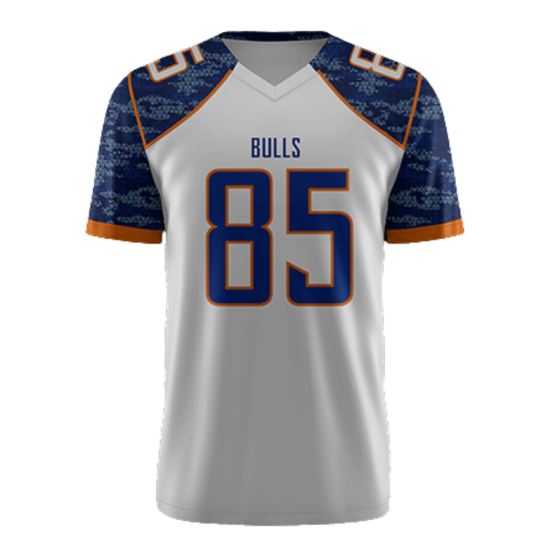 เสื้อฟุตบอลอเมริกันคุณภาพสูงสำหรับฤดูร้อน ผลิตจากโพลีเอสเตอร์ 100% ระบายอากาศได้ดี ซับเหงื่อ ดีไซน์แบบซับลิเมชั่นพร้อมชื่อทีม แขนสั้น