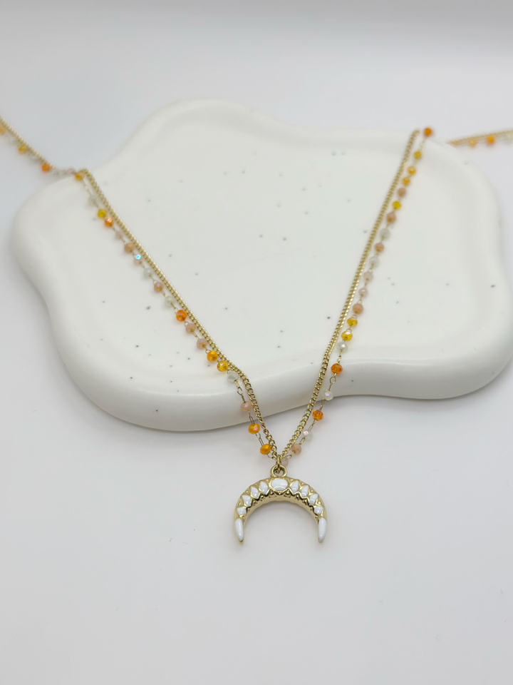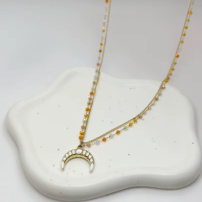 สร้อยคอแฟชั่นสุดชิคสำหรับฤดูร้อน MOONRIVER สร้อยคอผู้หญิงสแตนเลสสตีลสีโทนอุ่นสไตล์มินิมอล ดีไซน์รูปพระจันทร์สีขาว
