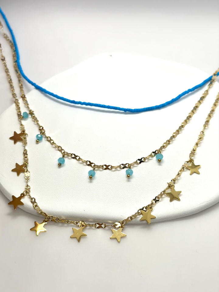 สร้อยคอแฟชั่นสตรีสุดฮิตประจำฤดูร้อน 14K ลายดาวเล็ก MOONRIVER สแตนเลสสตีลประดับลูกปัด สีฟ้า สไตล์โชคเกอร์