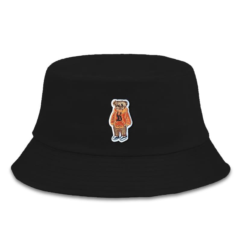 หมวกฤดูร้อนที่จำเป็นกับตุ๊กตาหมีปักสวมโปโลสีส้ม