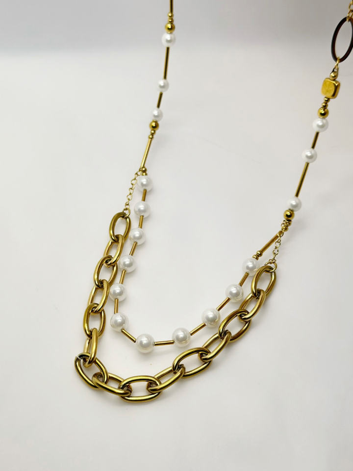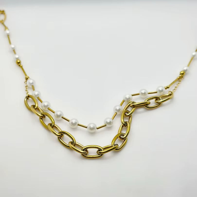 สร้อยคอแฟชั่นผู้หญิง MOONRIVER สแตนเลสประดับมุก ดีไซน์มินิมอล สายคู่ รุ่น Summer Essential