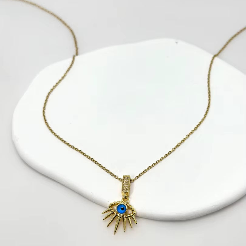 สร้อยคอประดับลูกปัดสำหรับผู้หญิง สไตล์มินิมอลจาก MOONRIVER ลายตาแมวสีฟ้า เครื่องประดับทองแดงสไตล์ศาสนา สำหรับฤดูร้อน