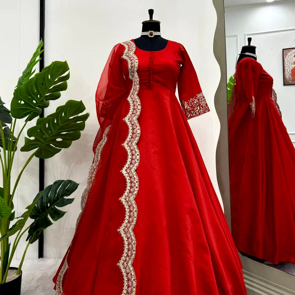 Product Name:Tapeta Silk Sequence Embroidery Gown With Dupatta