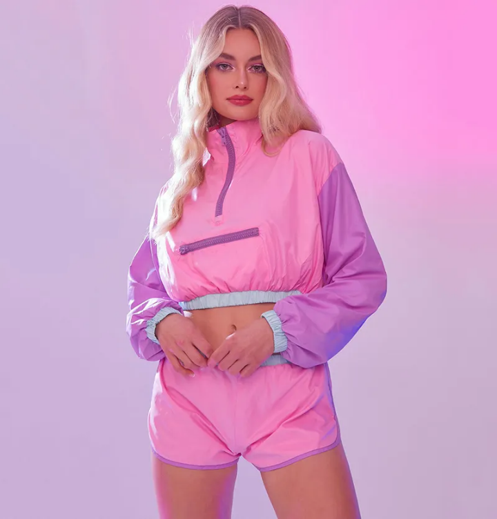 ชุดวอร์ม3ชิ้นสำหรับผู้หญิงเสื้อผ้าแนวสตรีทเสื้อแจ็กเก็ตกีฬาสีตัดกันสำหรับฤดูร้อนฤดูใบไม้ร่วง