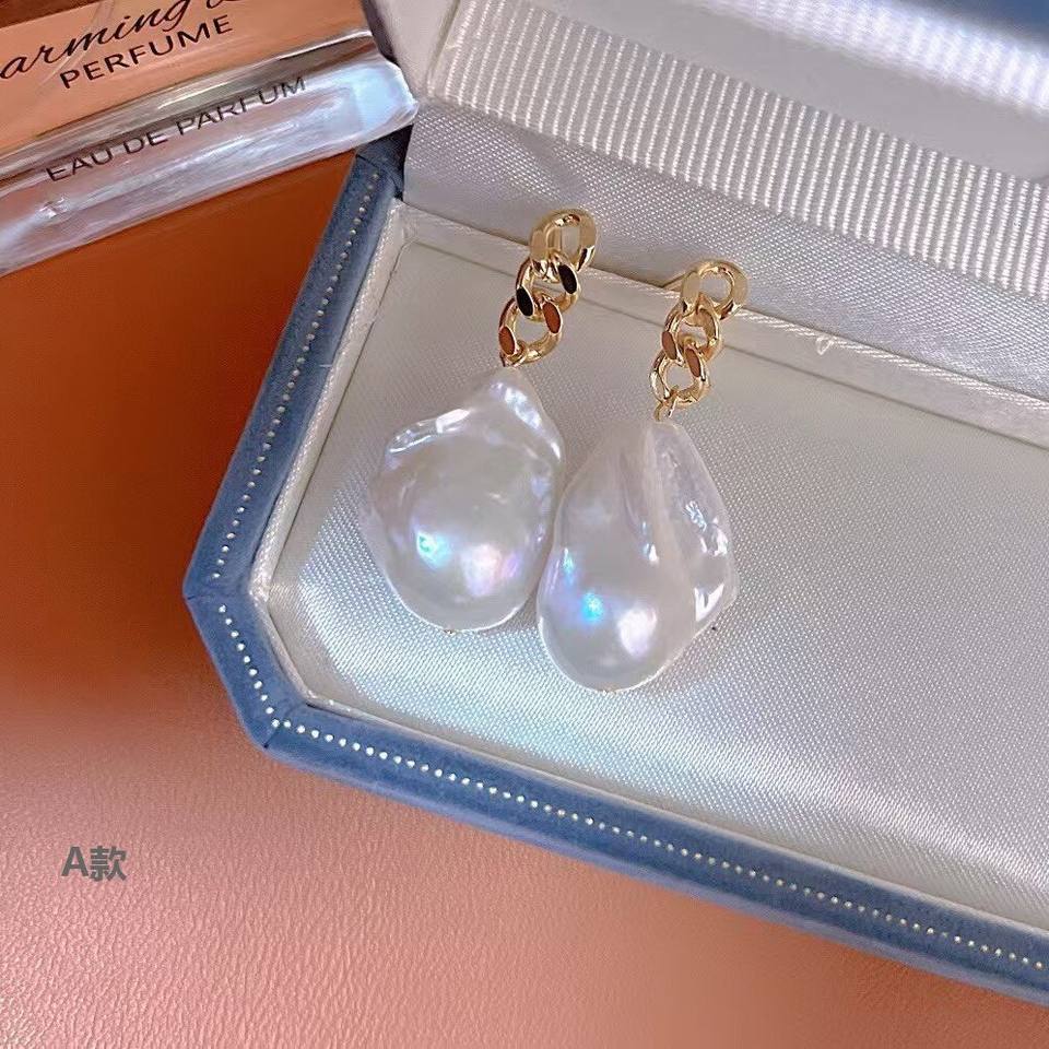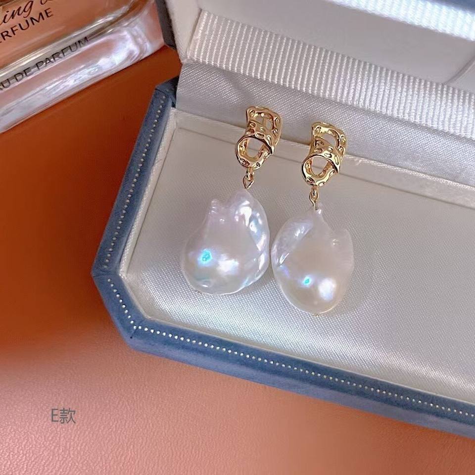 ต่างหูไข่มุกน้ำจืดสไตล์บาร็อคแฟชั่นฤดูร้อน