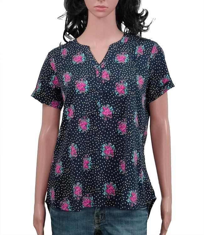 เสื้อเบลาส์แฟชั่นพิมพ์ลายดอกไม้สำหรับผู้หญิงเสื้อคอกลมแขนสั้นลำลองสำหรับผู้หญิง