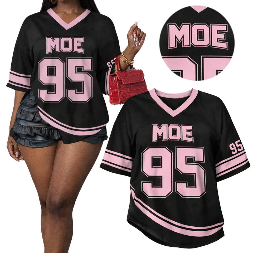 เสื้อยืดแฟชั่นฤดูร้อน สตรีทแวร์ พิมพ์ลายตัวเลข เสื้อยืดลำลอง คอวี แขนสั้น เสื้อยืดผู้หญิง ขายส่ง เสื้อเจอร์ซีย์อเมริกันฟุตบอล