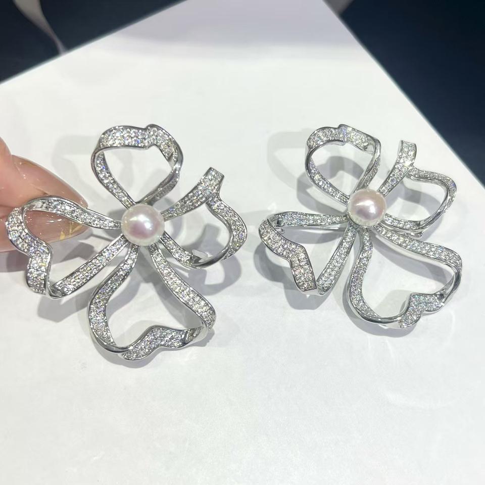 สร้อยคอไข่มุกน้ำจืดทรงใบโคลเวอร์สี่แฉก สไตล์ใหม่ทันสมัยสำหรับฤดูร้อน พร้อมเข็มกลัดรูปดอกไม้ประดับอก ดีไซน์หรูหรา