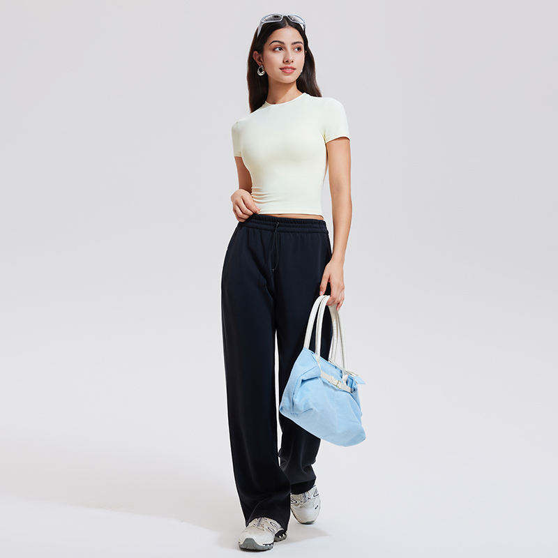 เสื้อครอปรัดรูปสำหรับผู้หญิงสำหรับฤดูร้อนเสื้อยืดแขนสั้นเซ็กซี่ทรงสลิมฟิตแบบเปลือยเสื้อยืดโยคะธรรมดาไซส์เซ็กซี่