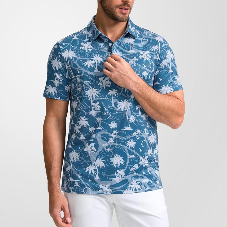 เสื้อเชิ้ตแขนสั้นพิมพ์ลายสำหรับผู้ชายทรงเข้ารูปสำหรับฤดูร้อนพร้อมป้ายโลโก้แบบออกแบบได้ตามต้องการ