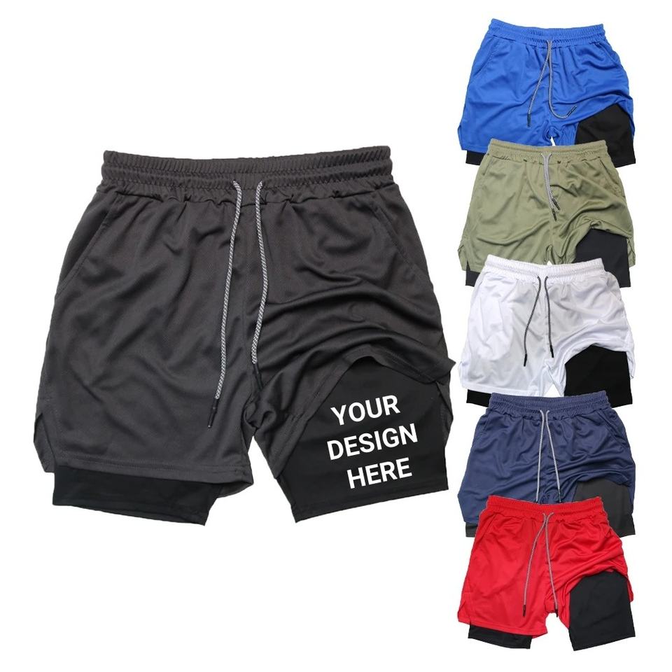 กางเกงขาสั้นออกกำลังกายสำหรับผู้ชายกางเกงขาสั้นออกกำลังกายแบบ2 in 1แห้งเร็วสำหรับออกกำลังกายวิ่ง