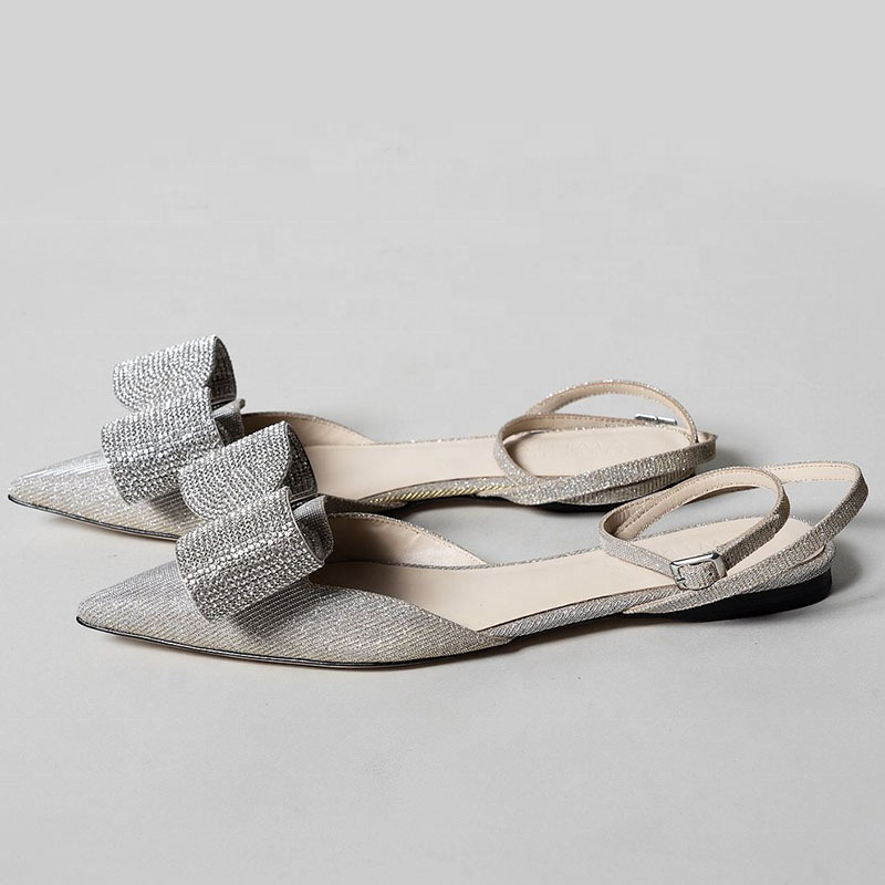 รองเท้าส้นแบนสำหรับผู้หญิง รุ่นปลายแหลม ประดับโบว์วิบวับ เซ็กซี่ สายรัดแบบหัวเข็มขัด ซัมเมอร์ 2022 ไซส์ใหญ่ 46