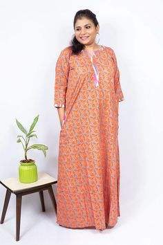 ชุดนอนผ้าฝ้ายลายดอกไม้สไตล์รักษ์โลกสำหรับฤดูร้อนและฤดูใบไม้ร่วง ทรงยาวคลุมเท้า คอวี แขนบาน ระบายอากาศได้ดี สวมใส่ง่าย สบายตัว