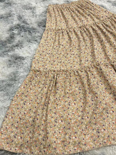 กระโปรงลายดอกไม้สำหรับฤดูร้อนกระโปรงยาว106ซม. ผ้าชีฟองแต่งระบายเรียบกระโปรงยาว100% ผ้าโพลีเอสเตอร์แบบลำลอง