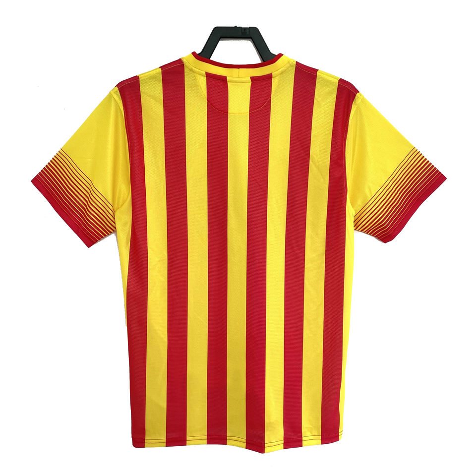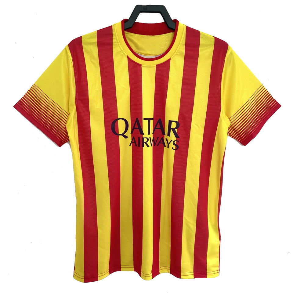 ฤดูร้อนชุดฟุตบอลแขนสั้นคอกลมย้อนยุค 2013/14 บาร์เซโลน่าเสื้อแข่งทีมเยือนพิมพ์ลายแห้งเร็วเสื้อยืดผู้ใหญ่สำหรับทุกเพศ