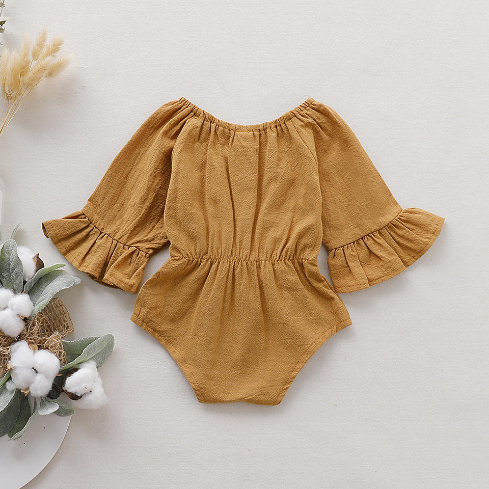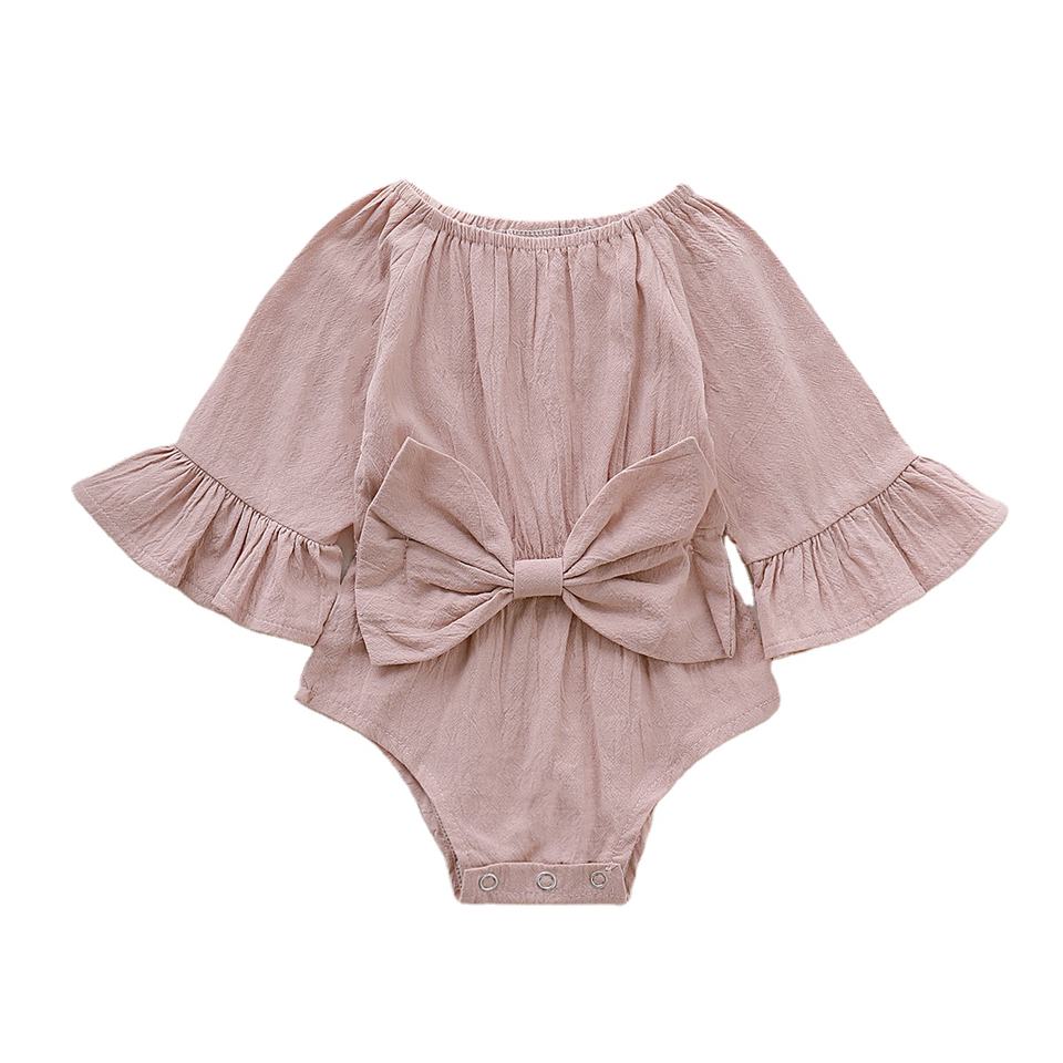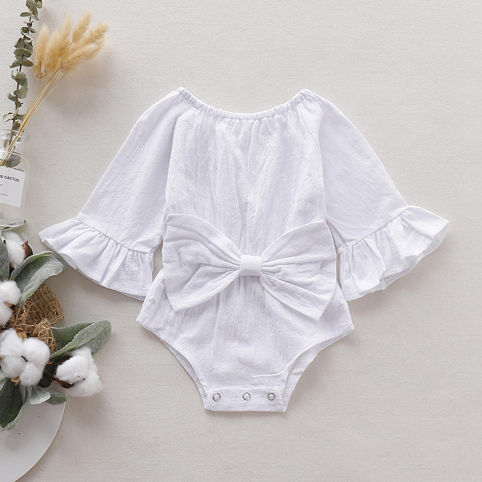 ชุดรอมเปอร์เด็กอ่อน แขนยาว ผ้าฝ้าย คุณภาพดี ลายโบว์เรียบๆ คอทรงโอ แขนบาน สำหรับเด็กอายุ 0-3 ปี เหมาะสำหรับเด็กคลอดก่อนกำหนด