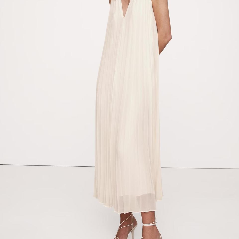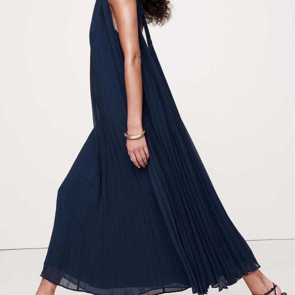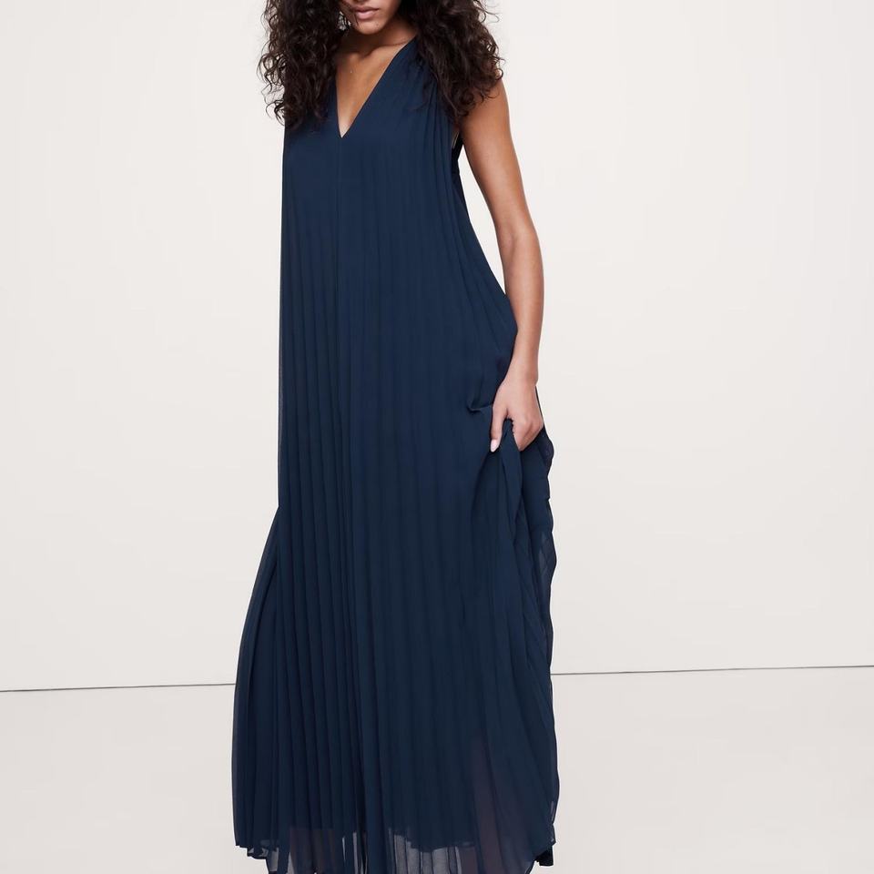 เดรสยาวทรงวีคอลึกผ้าฝ้ายโพลีเอสเตอร์สีน้ำเงินคุณภาพสูงสำหรับฤดูร้อน สไตล์ลำลอง แขนกุด เหมาะสำหรับผู้หญิง
