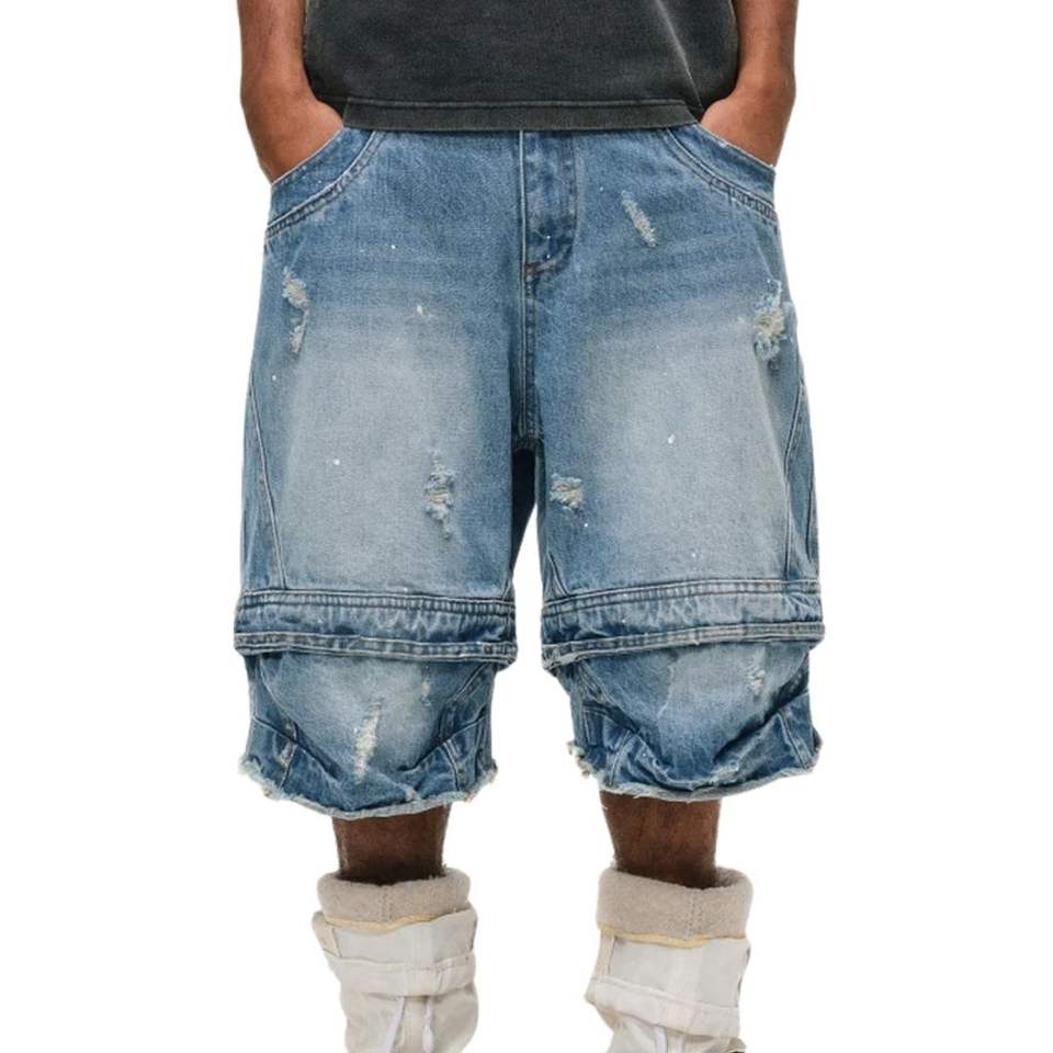 สตรีทแวร์แนวฮิปฮอปสำหรับฤดูร้อนกางเกงยีนส์ทรงแบ็กกี้ขาสั้นผ้าฝ้าย100% ขาสั้นระบายอากาศได้ดี