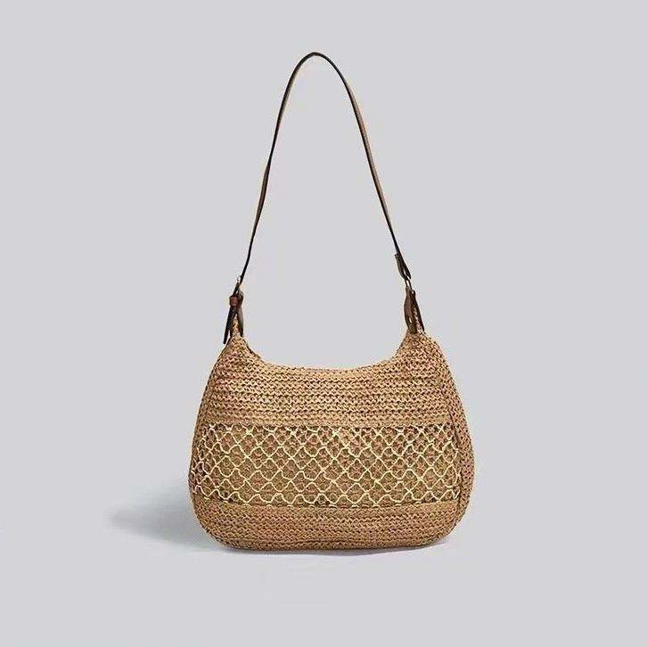 กระเป๋าสานทรงกลวงสำหรับฤดูร้อน กระเป๋าสะพายไหล่แฟชั่นใหม่ กระเป๋าสานสำหรับผู้หญิง กระเป๋าชายหาด