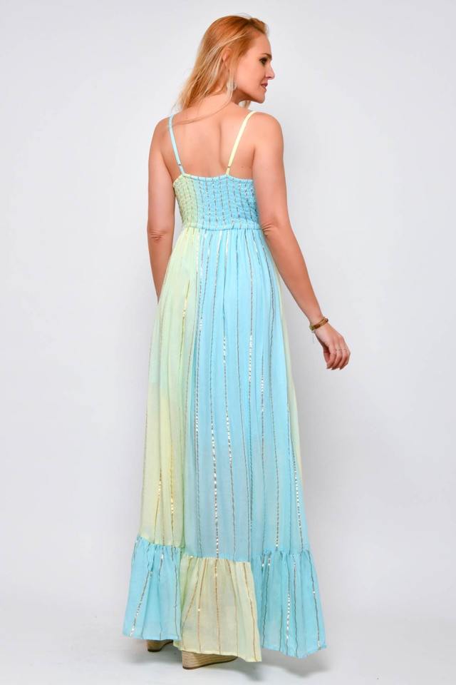 เดรสแม็กซี่มัดย้อมคอวีสำหรับผู้หญิงเดรสแฟชั่นสูงสำหรับปาร์ตี้และรีสอร์ตชุดเดรสสำหรับเด็กผู้หญิงยาวใส่ไปชายหาด