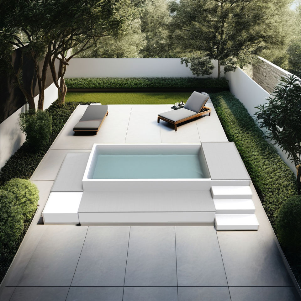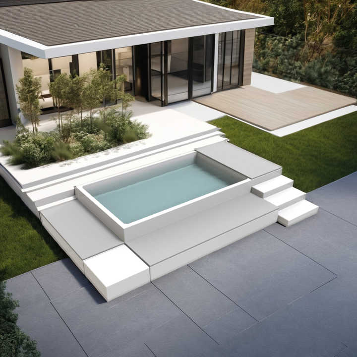 สระว่ายน้ำในสระว่ายน้ำกลางแจ้งทำจากไฟเบอร์กลาสแข็งแรงสระว่ายน้ำบ้านฤดูร้อน
