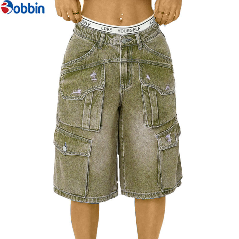 กางเกงยีนส์ขาสั้นทรงหลวมสไตล์ลำลองสำหรับผู้หญิง ใส่สบาย แฟชั่นเรียบง่าย มีกระเป๋าข้าง ซักได้ ทรงบอยเฟรนด์