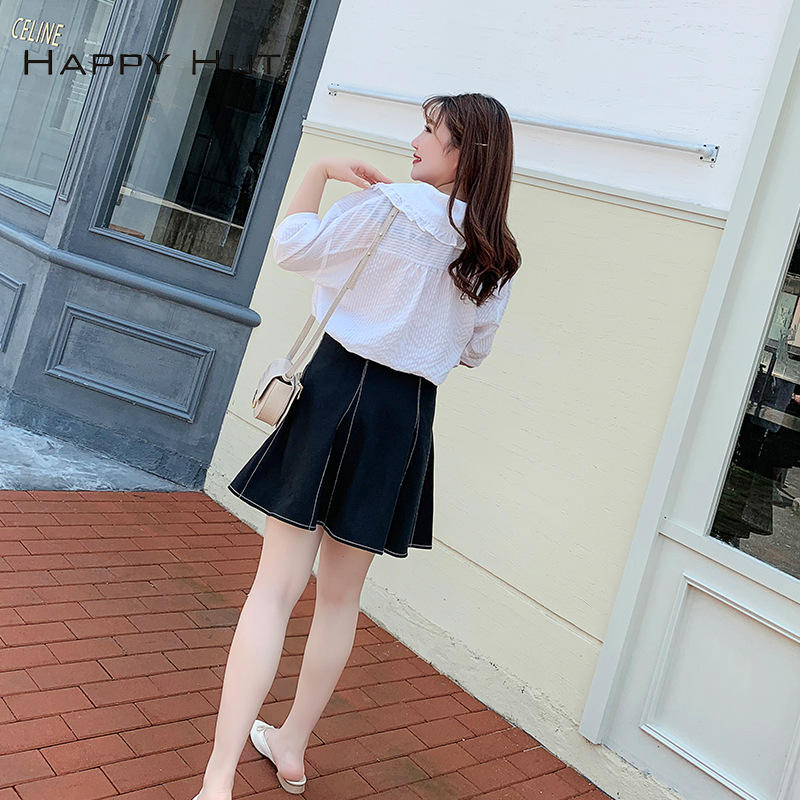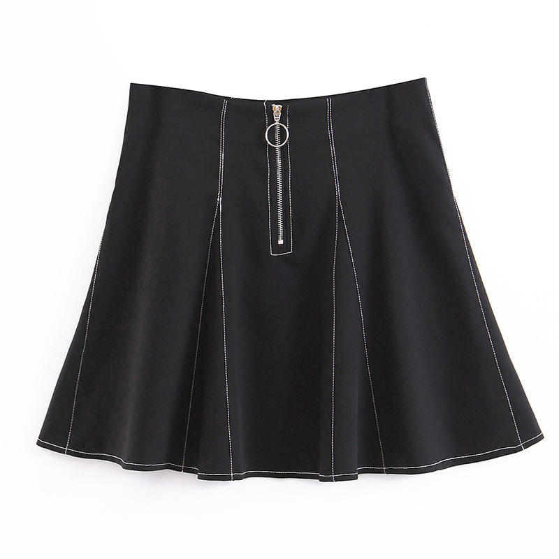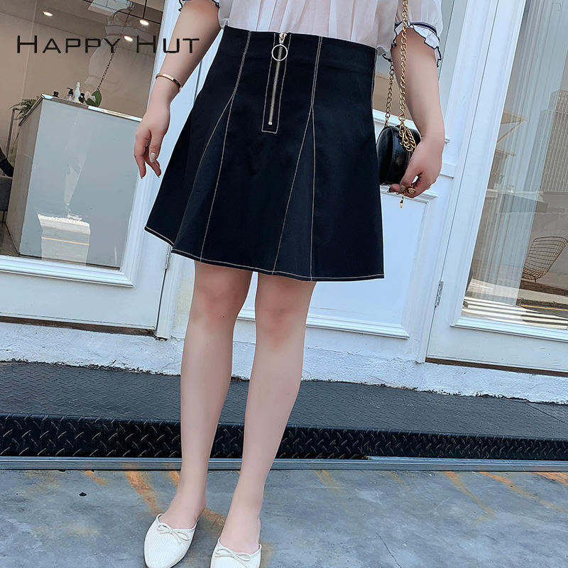 กระโปรงทรงเอไลน์สีดำสไตล์เกาหลีฤดูร้อน N6916ดีไซน์เอวปกติมีซิป