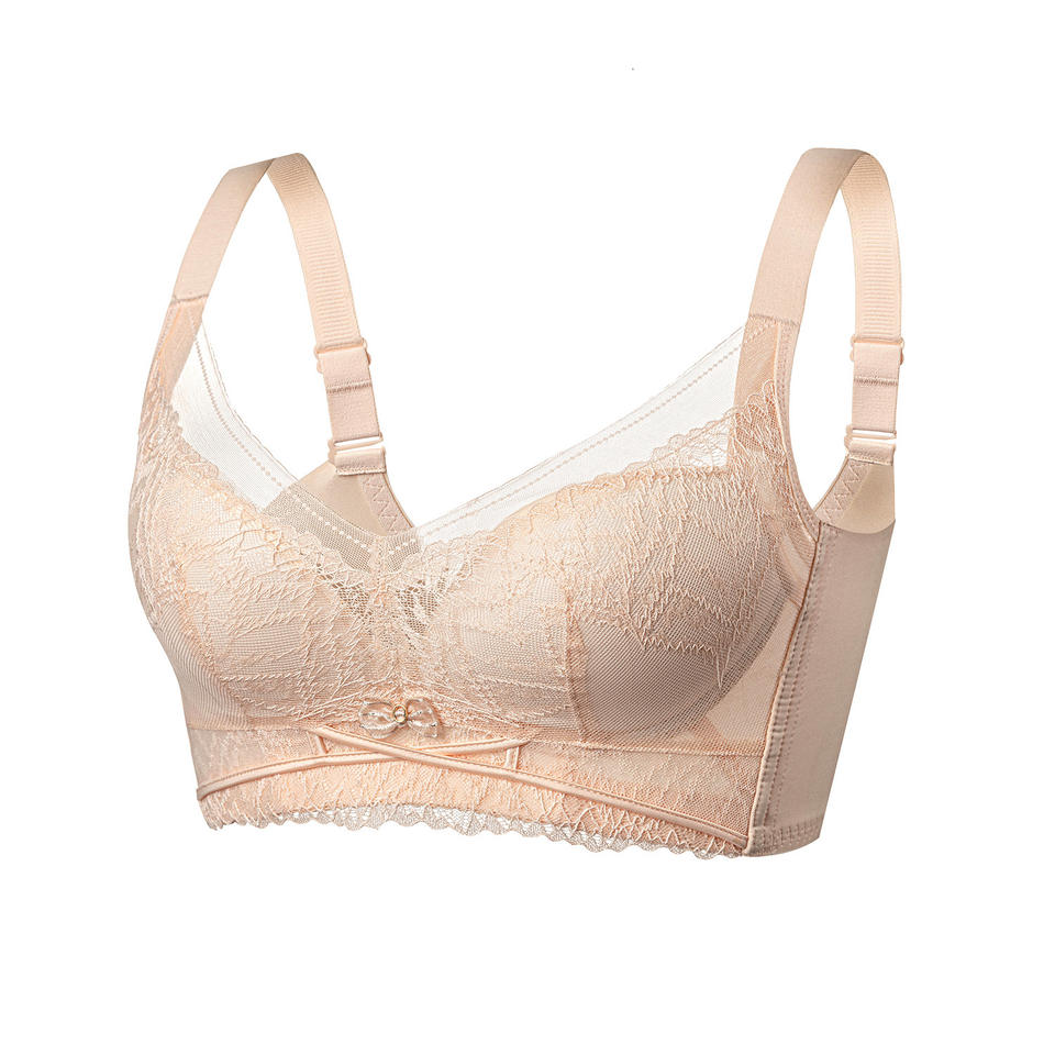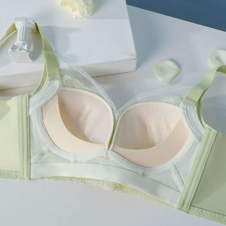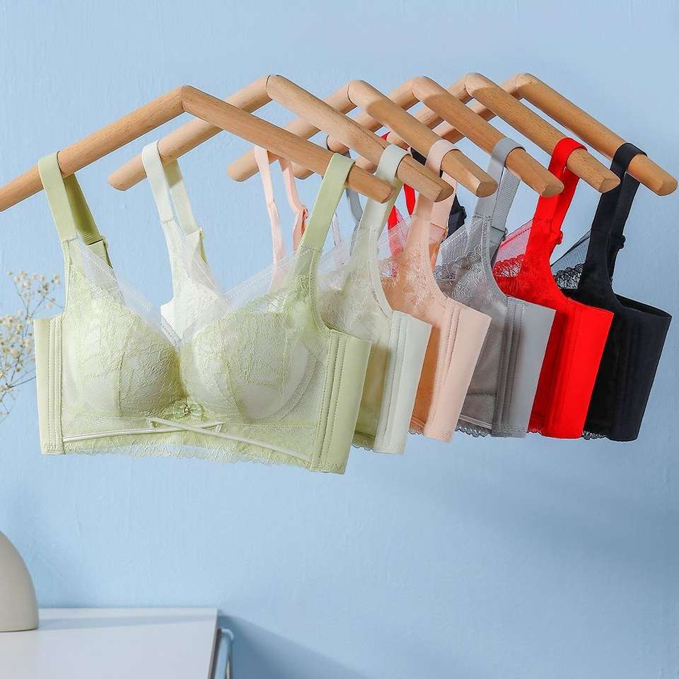 บราปักลายดอกไม้บางเบา ระบายอากาศได้ดี แบบดันทรง สายปรับได้ ผ้าลูกไม้ สำหรับหน้าอกใหญ่ เหมาะสำหรับฤดูร้อน