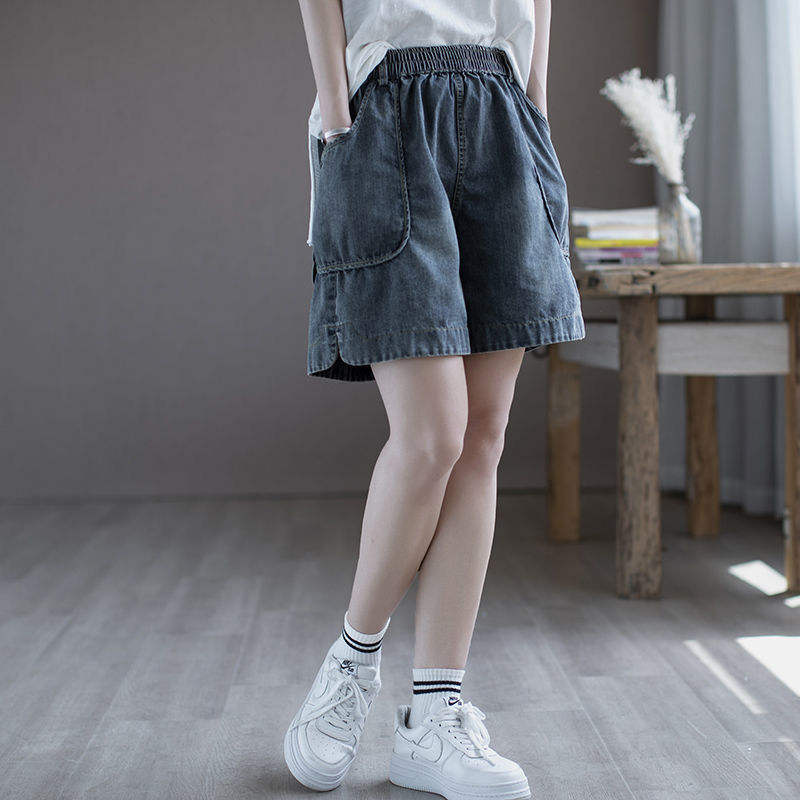 กางเกงขาสั้นผ้ายีนส์เอวสูงระบายอากาศได้สำหรับผู้หญิงกางเกงขาบานสีซักได้สไตล์ใหม่ฤดูร้อน
