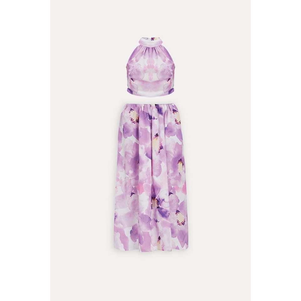 ชุดกางเกงสีม่วงไลแลคสำหรับฤดูร้อน พร้อมตกแต่งกระดุม