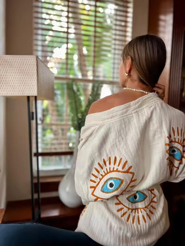 ชุดคลุมยาวชุดคลุมยาวผ้าฝ้ายตุรกีสำหรับผู้หญิงชุดคลุมชายหาดดีไซน์ชั่วร้ายชุดคลุมยาวสำหรับใส่ไปเลานจ์ฤดูร้อน