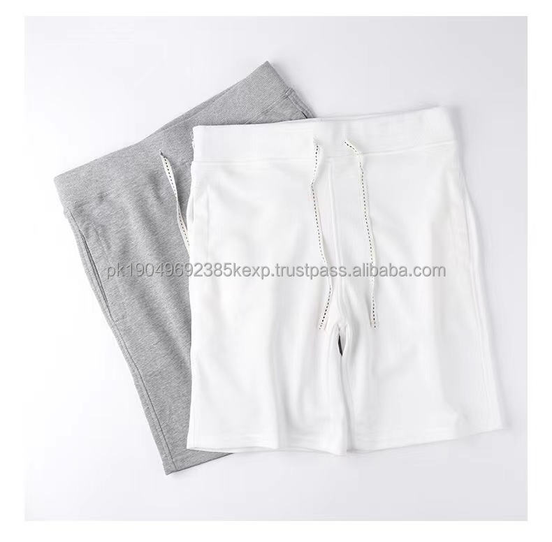 กางเกงขาสั้นลำลองหรูหราฤดูร้อนสำหรับผู้ชายกางเกงเอวยางยืดเนื้อบางสีพื้นระบายอากาศได้มีกระเป๋าพลัสไซส์พอดีกับสีขาวสีดำ