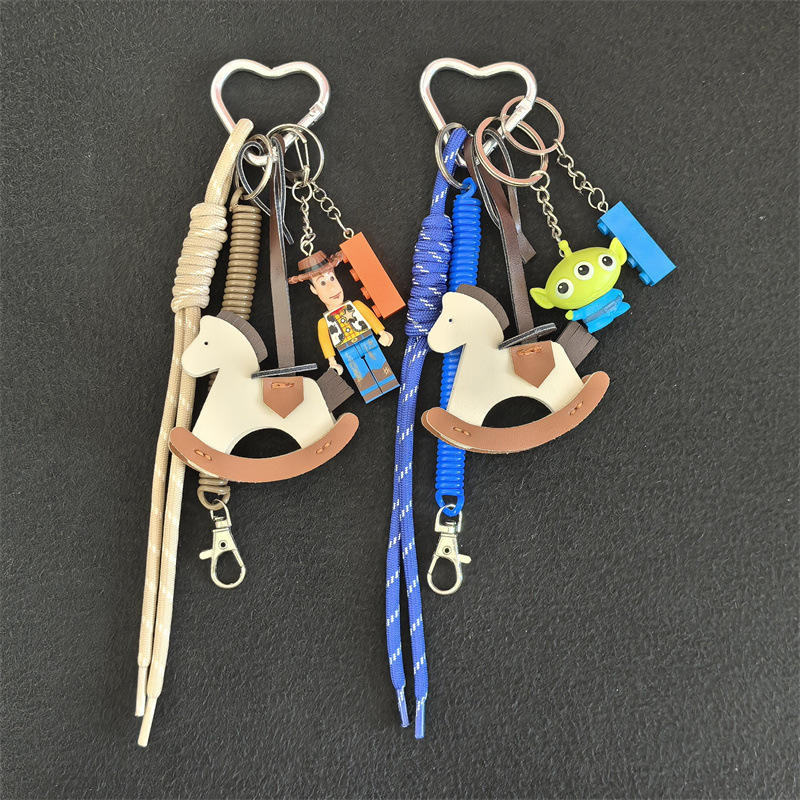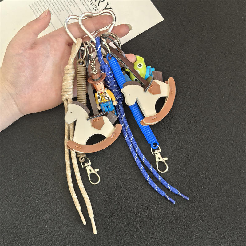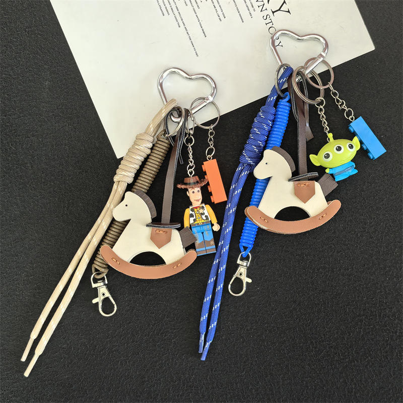 พวงกุญแจหนังรูปม้าไม้เล็กสไตล์ MIU สำหรับฤดูร้อน ดีไซน์เรียบง่ายและปลอดภัย เหมาะสำหรับตกแต่งกระเป๋าสุภาพสตรี