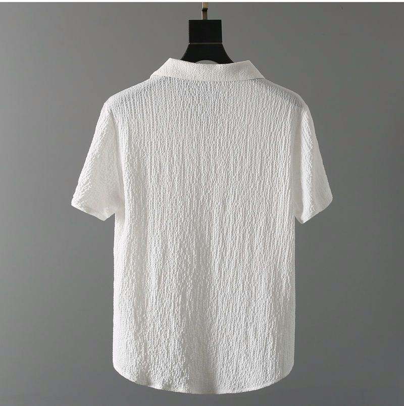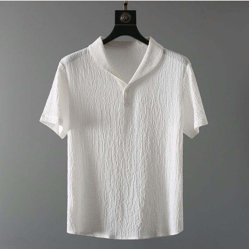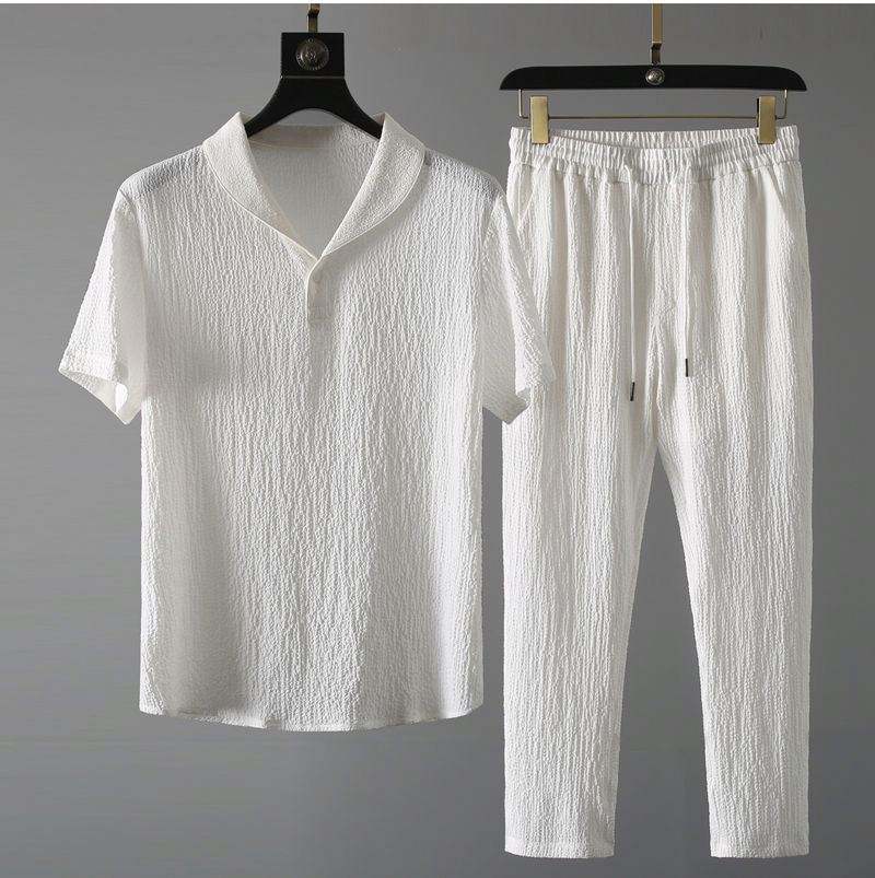 ชุดเซ็ตฤดูร้อนสำหรับผู้ชาย เสื้อแขนสั้น + กางเกงขายาว สีพื้น ปกเสื้อโปโล ติดกระดุม เอวยางยืด ชุดลำลอง