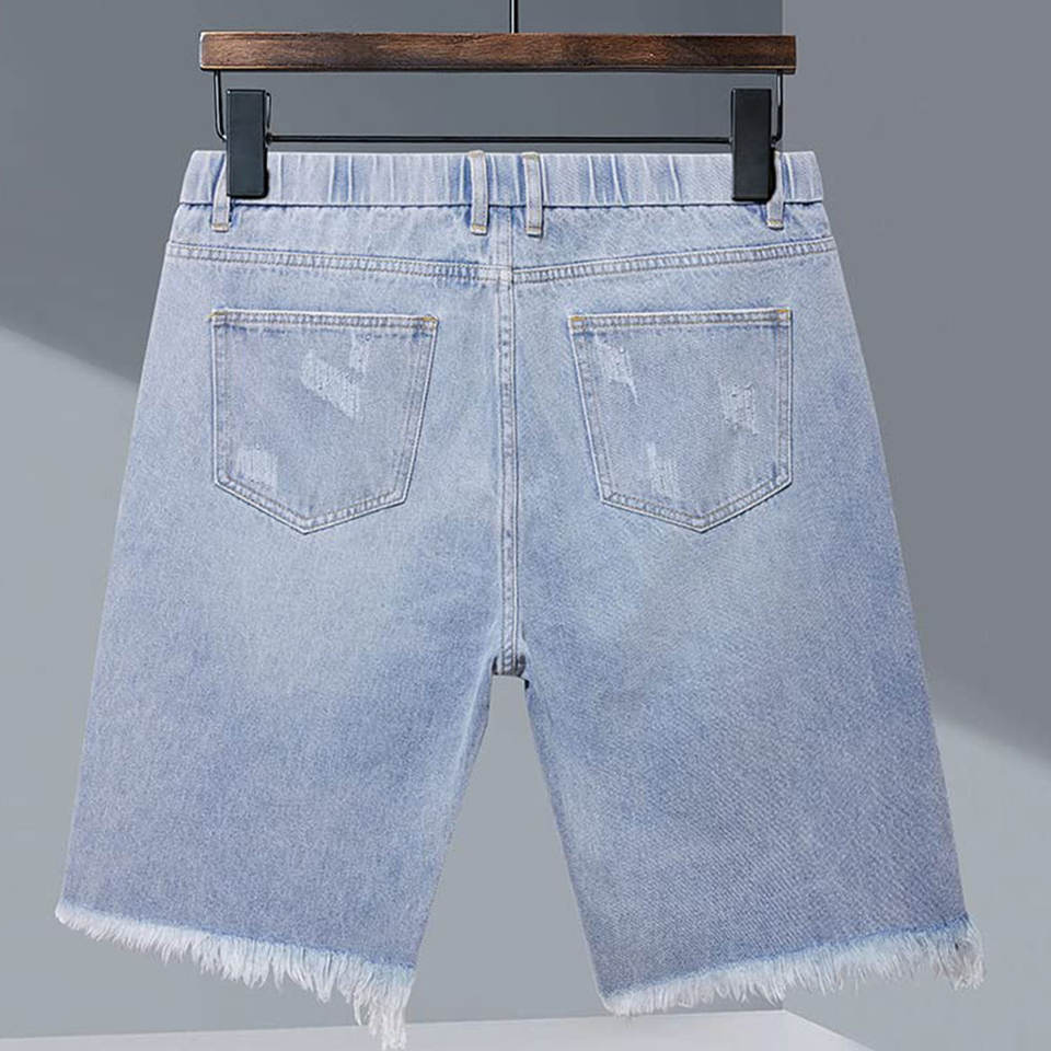 กางเกงยีนส์ขาสั้นผู้ชายสำหรับฤดูร้อน ดีไซน์ล่าสุด สีน้ำเงิน ราคาส่งถูก รับทำโลโก้ตามสั่ง