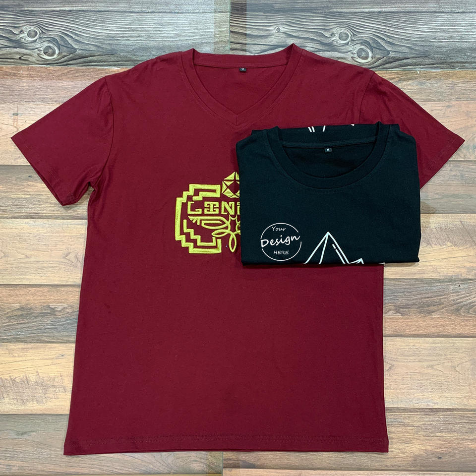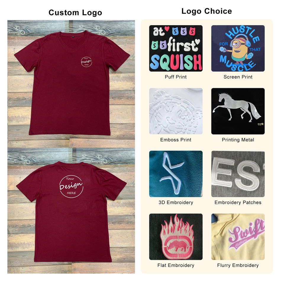 เสื้อยืดผ้าฝ้าย180 GSM สำหรับผู้ชายฤดูร้อนเสื้อยืดคอวีทรงหลวมระบายอากาศได้งานปัก3D สีแดงปรับแต่งได้
