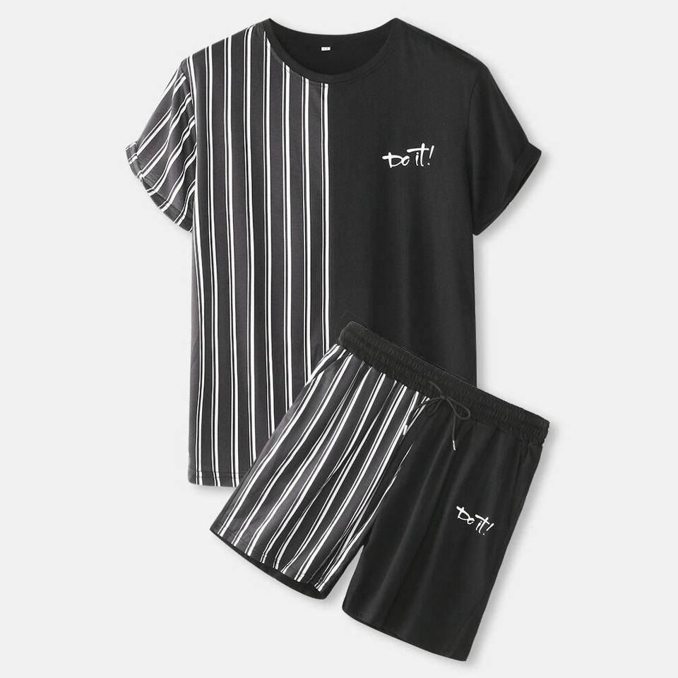 ชุดเสื้อยืดและกางเกงขาสั้นสำหรับผู้ชาย ใส่หน้าร้อน